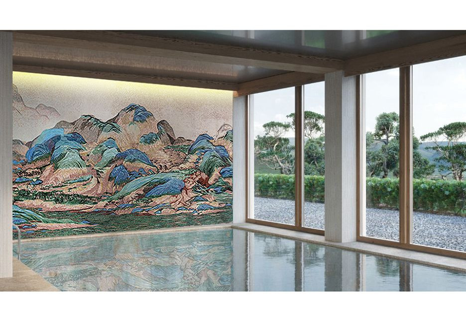 Панно - 2680x1200 Размер: См Стеклянная Мозаика Горы И Воды На Тысячу Ли бежевый Art Natura