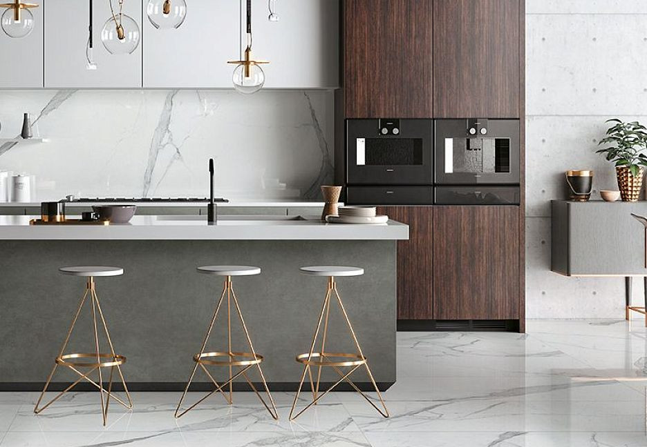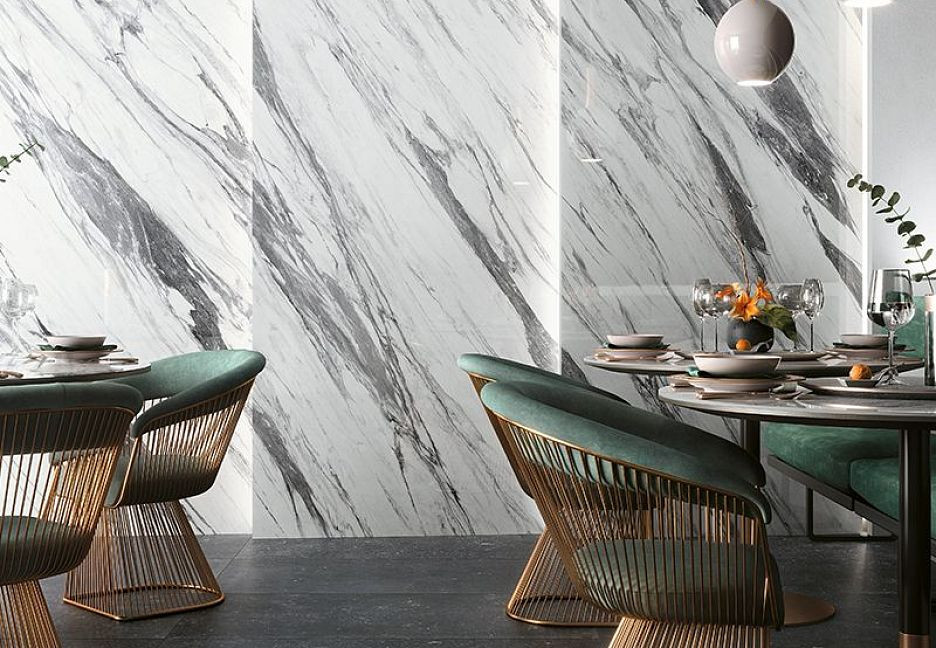 Керамогранит 240x120 Statuario Extra Lucido Cosmopolitan глянцевая белый мрамор 9мм Mirage