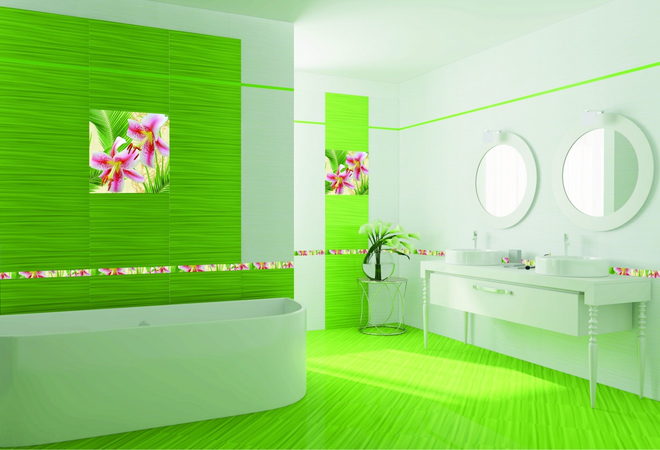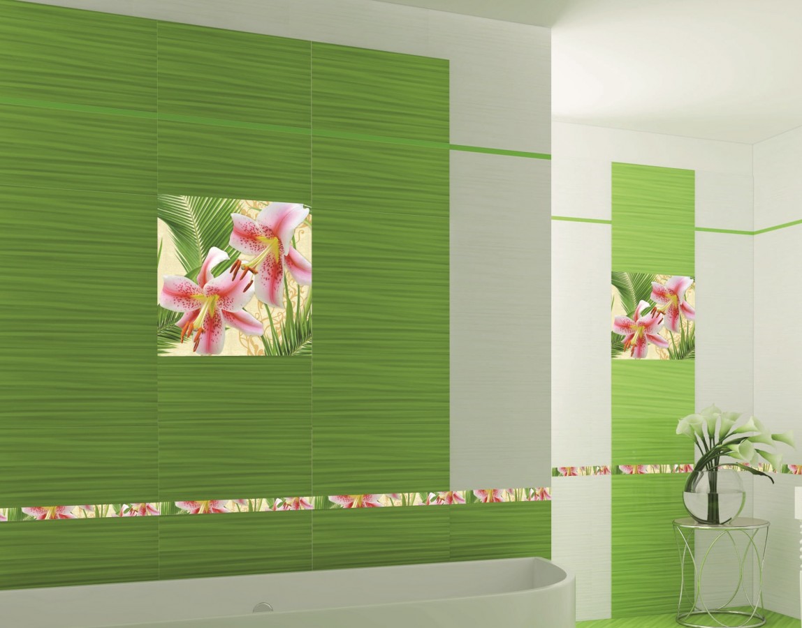 Плитка Belleza 50x25 Лилия декор стеклянный Lily многоцветный глянцевая зеленый