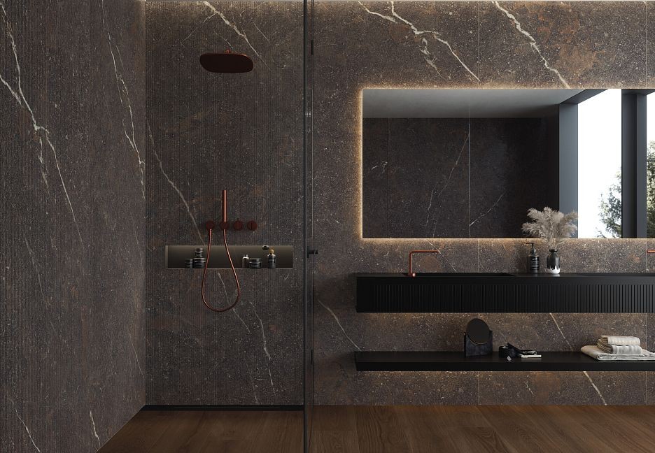 Керамогранит 275x100 Керамогранит Museum Royal матовая черный мрамор 6мм Museum