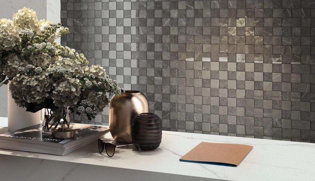 Плитка Atlas Concorde 30x30 Marvel Grey Mosaico 3D Aslh темно-серый мрамор 10мм