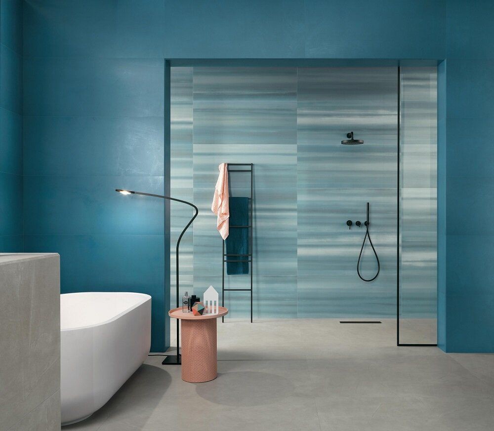 Плитка Atlas Concorde 120x50 Prism Gradient A4Tr матовая голубой краска, штукатурка, под обои, с рисунком 9мм