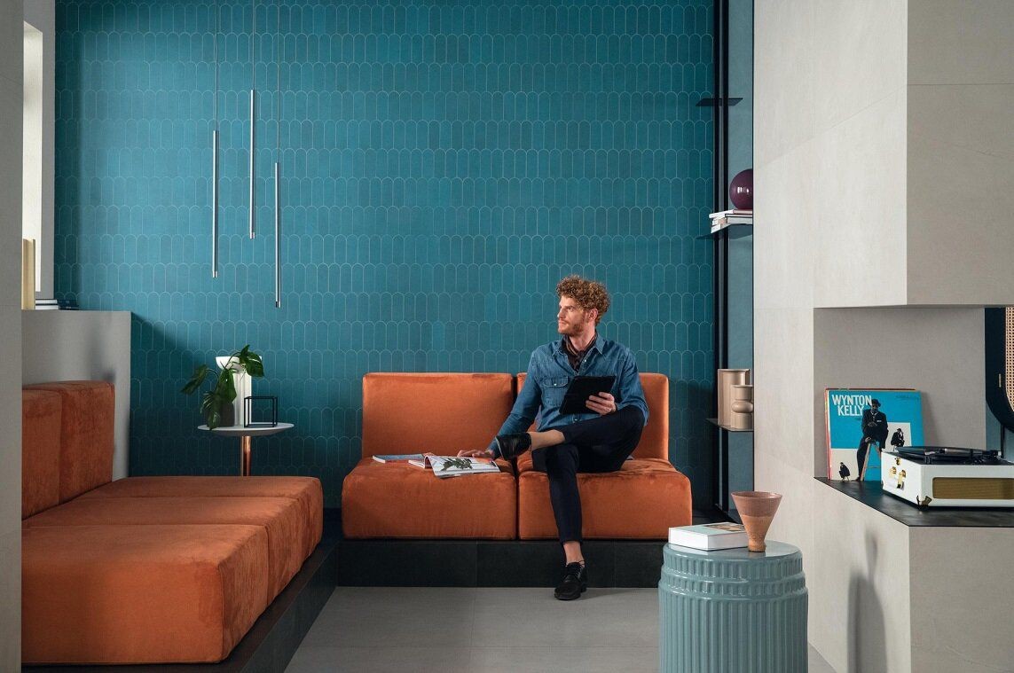 Плитка Atlas Concorde 32x31 Prism Dusk Wiggle A4Z9 микс голубой бетон, цемент, под обои