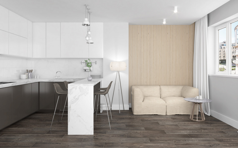 Плитка напольная керамогранит 120x20 Сохо серый ректифицированный K-1621 MR Soho матовая глазурованная Laparet