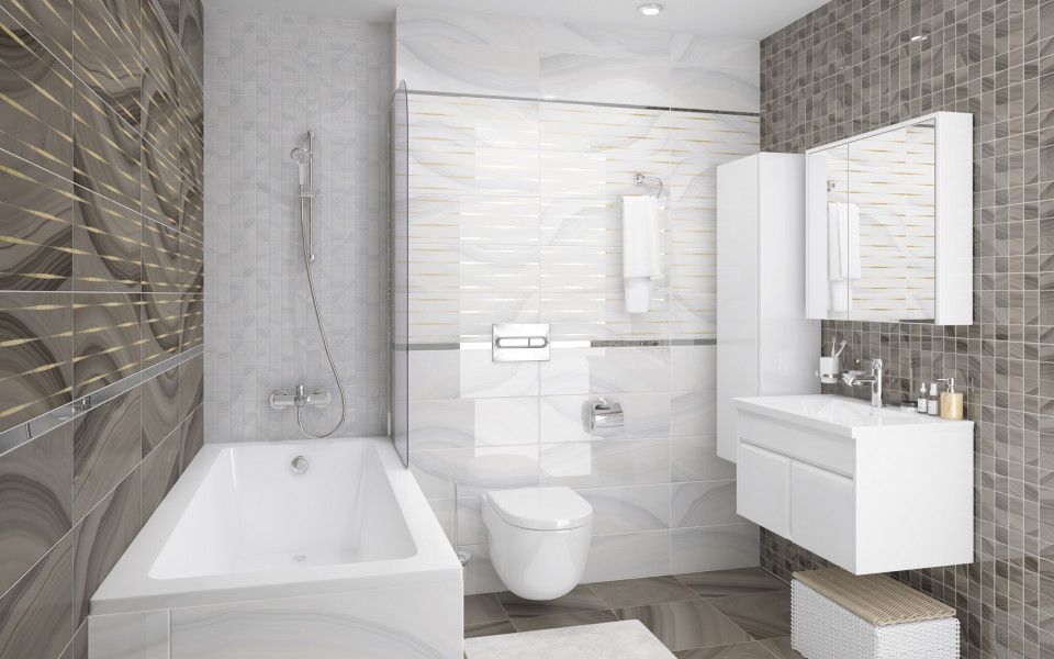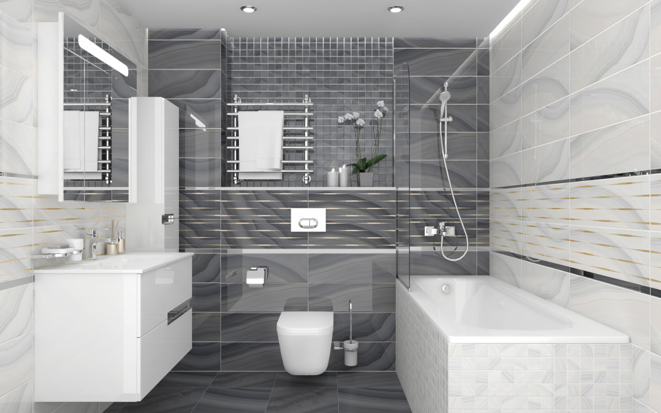 Плитка настенная 60x20 декор Лайнс VT C40 60082 серый глянцевый Агат глянцевая глазурованная Laparet