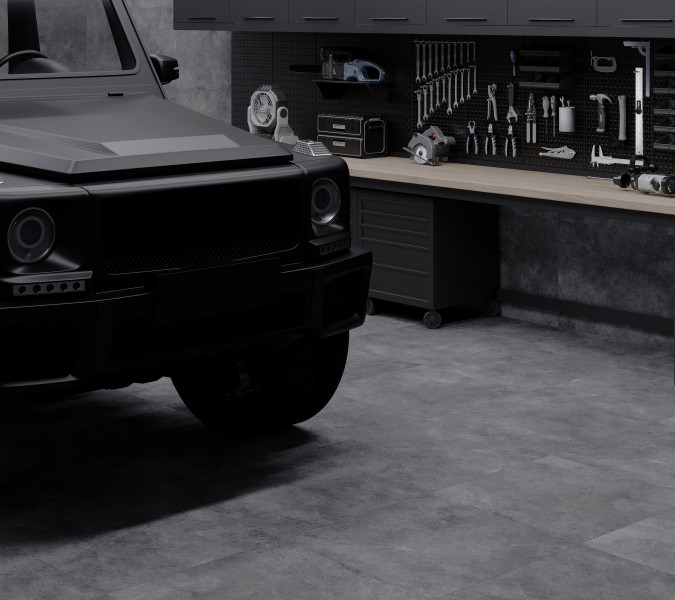 Плитка керамогранит 60x60 Графит ПРО тём-серый LP6060G0371R мат. структурный+гл.чернила R10 B Фортецца матовая с глянцевым эффектом глазурованная Laparet