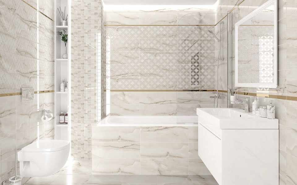 Плитка настенная 60x20 мозаика декор мозаичный бежевый ММ60130А глянцевый Хэппи глянцевая глазурованная Laparet