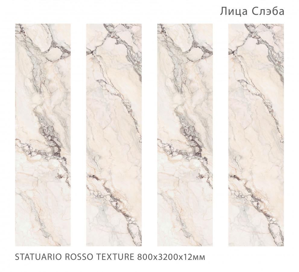 Керамический слэб Matt Statuario Rosso текстурированная 320x160 12мм Staroslabs