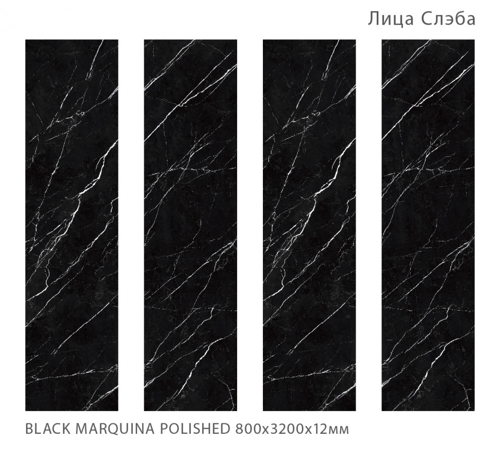 Керамический слэб Polished Black Marquina полированная 320x160 12мм Staroslabs
