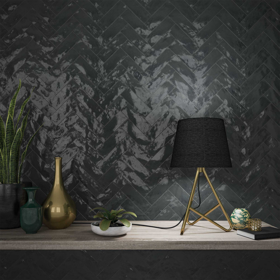 Плитка DNA Tiles 16x5 Safi Graphite 122103 глянцевая черный однотонная 8мм