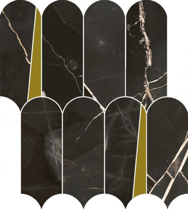 Плитка Италон 36x33 Stellaris Absolut Black Mosaico Elegant 620110000235 микс черный мрамор, с золотом 9мм