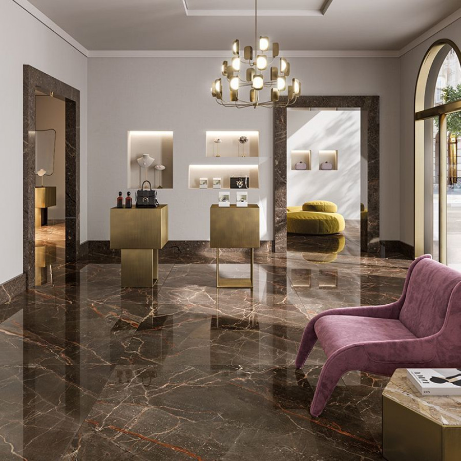 Керамогранит 120x60 Ombra Moca Rett 9Cento лаппатированная коричневый мрамор 9мм Keope Ceramiche