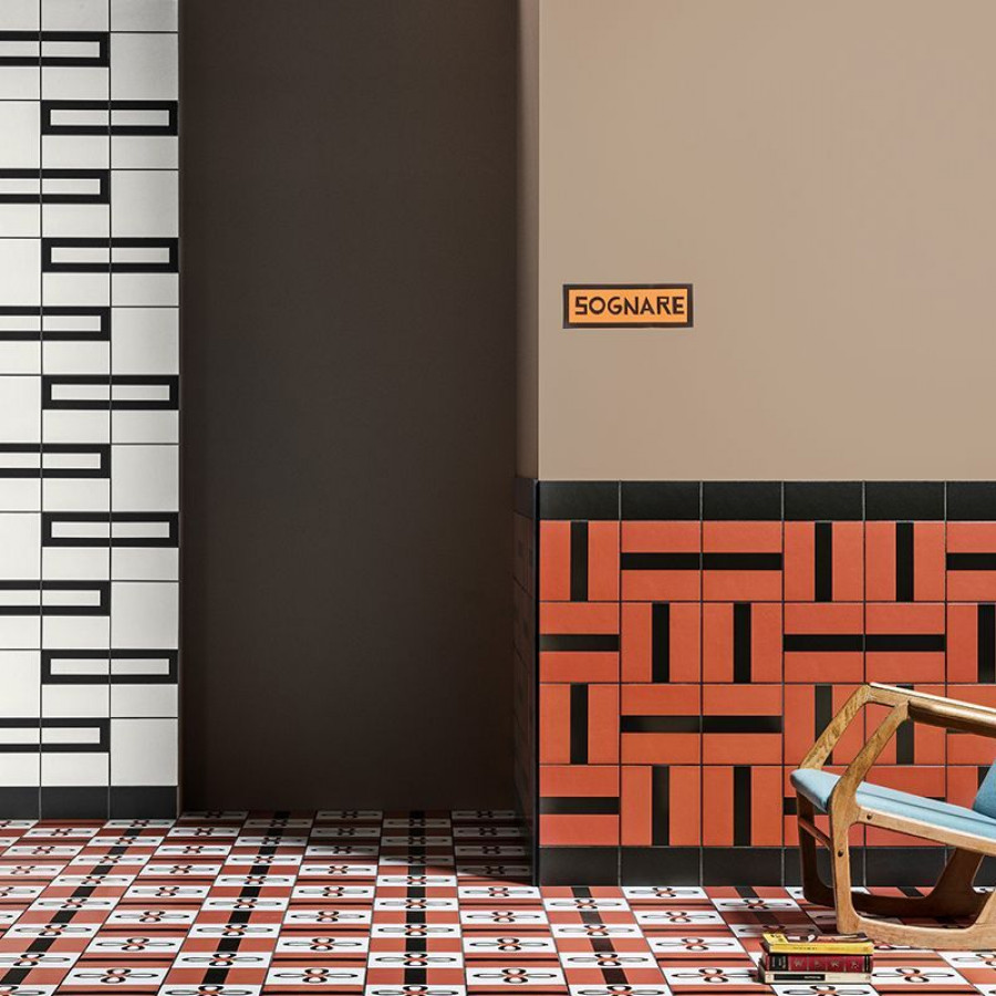 Керамогранит 21x21 Matone Margherita матовая черный пэчворк Mutina