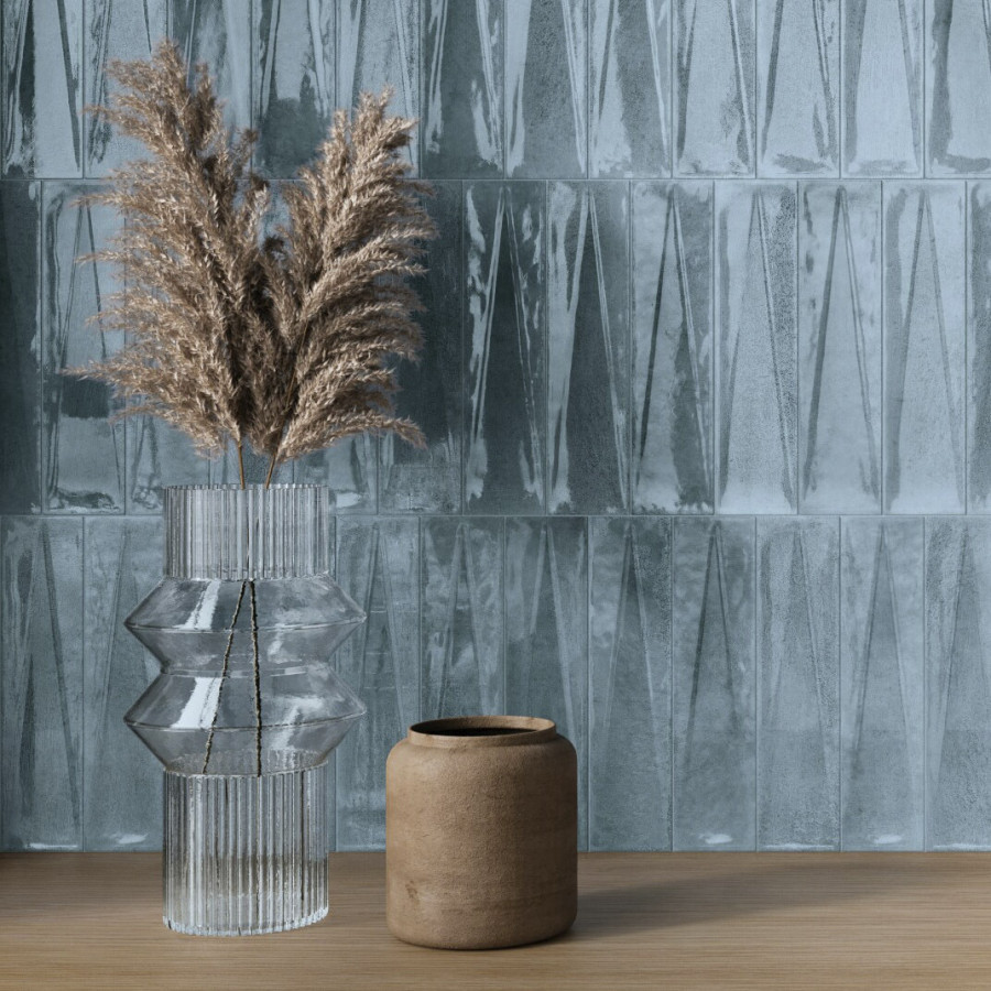 Плитка 25x6 Blue Glossy Bari глянцевая голубой однотонный 9мм Harmony