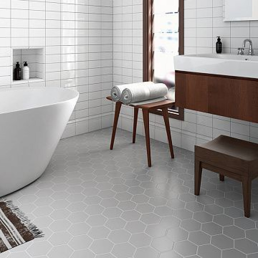Плитка 15x10 White Scale Hexagon глянцевая белый цемент Equipe