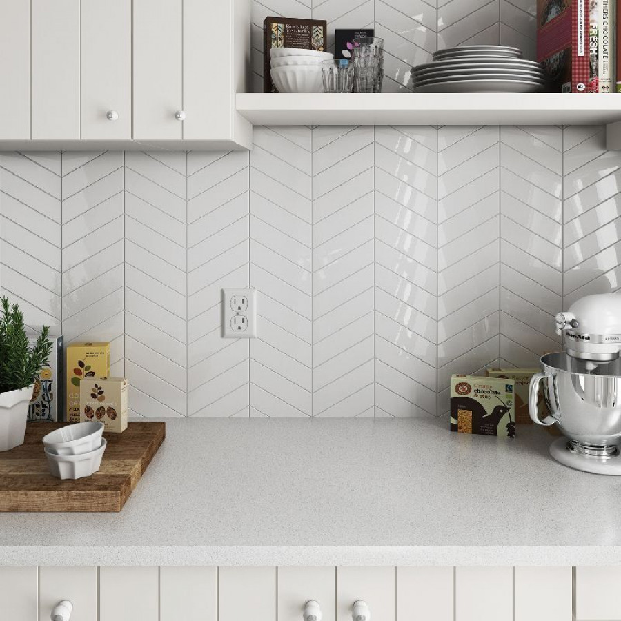 Плитка 20x5 White Righ Chevron Wall глянцевая белый однотонный Equipe