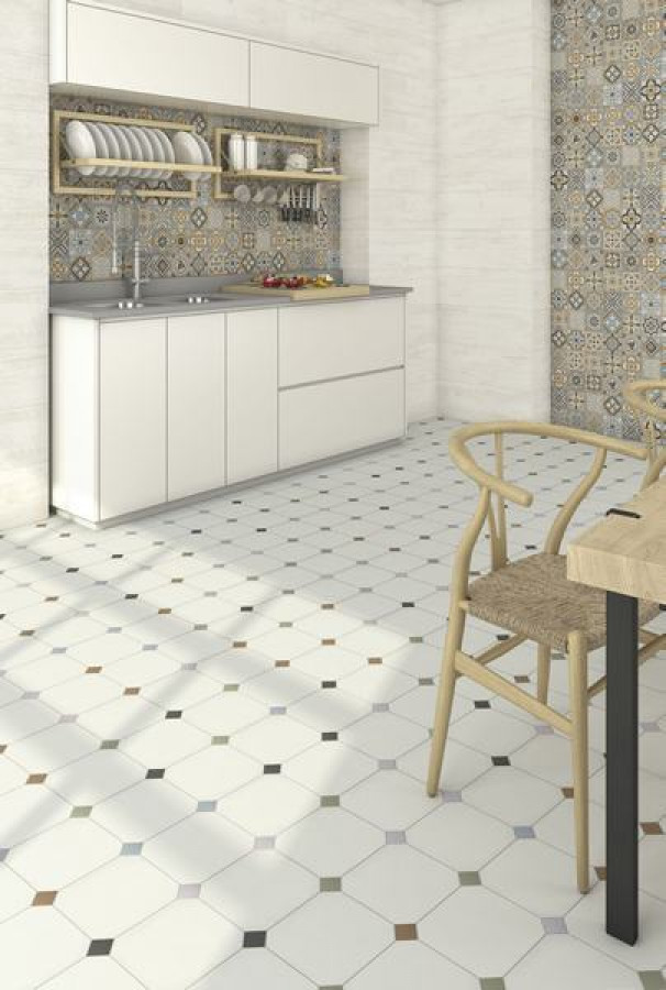 Плитка 20x20 Sombra Variette Octogono Matt Vodevil матовая, неполированная белый камень Vives
