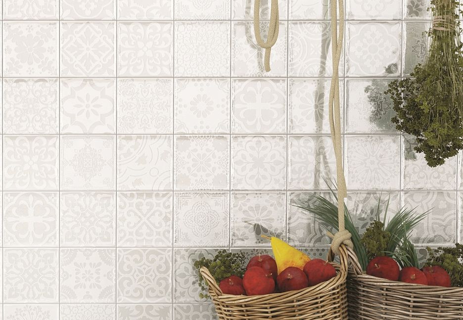 Плитка 15x15 Blanco Tamil Brillo Etnia глянцевая, рельефная белый однотонный Vives
