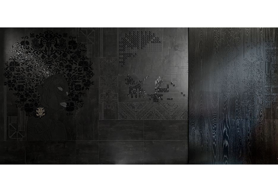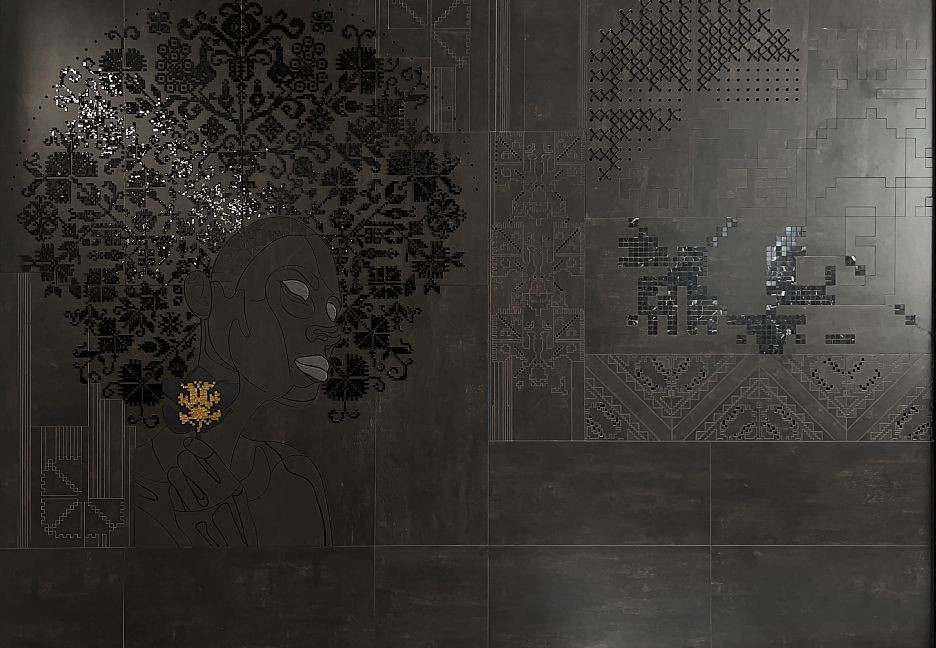 Авторское панно 230x155 Модуль С Вышивкой Художественная Резка По Керамограниту Инкрустация Мозаикой Черная Ночь черный 16511442мм Art Natura