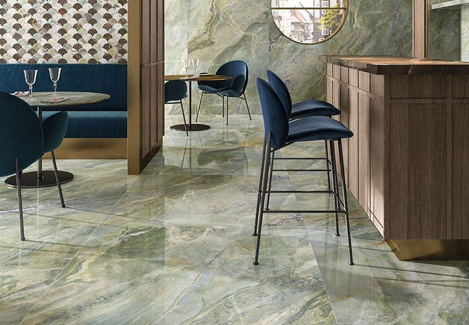 Керамогранит 280x120 Raggio Verde Rett 9Cento лаппатированная зеленый мрамор 6мм Keope Ceramiche
