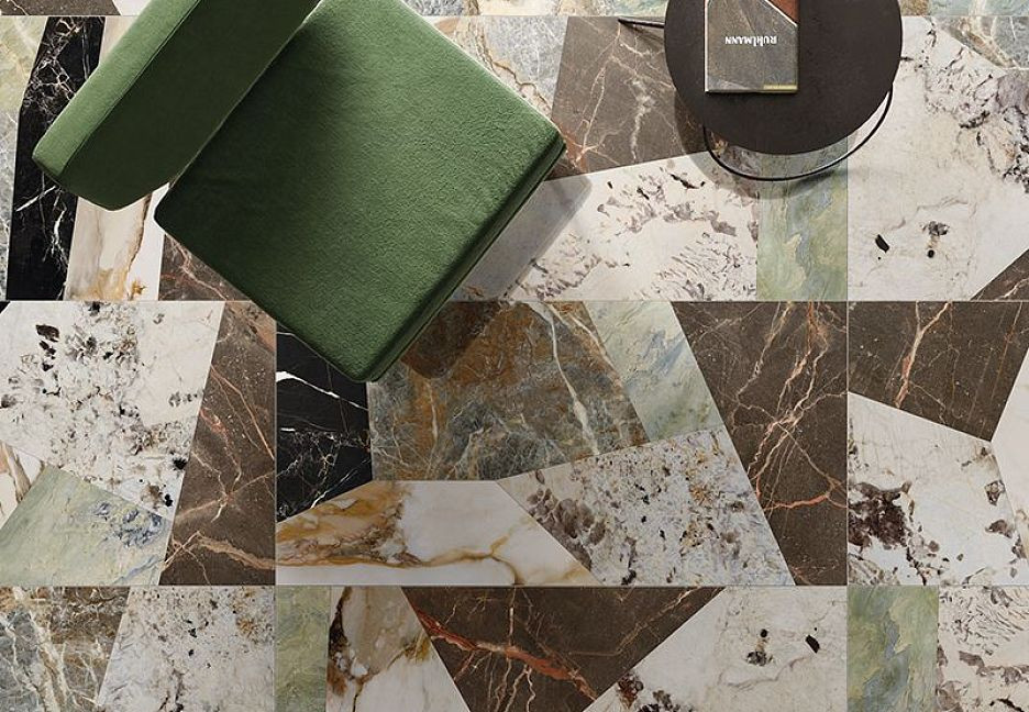 Керамогранит 120x60 Raggio Verde Rett 9Cento лаппатированная зеленый мрамор 9мм Keope Ceramiche