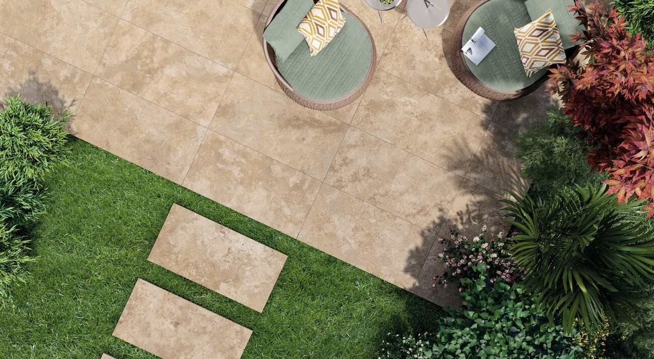 Плитка Keope Ceramiche 60x60 Percorsi Frame Travertino Beige R10 Gj5H бежевый камень 9мм