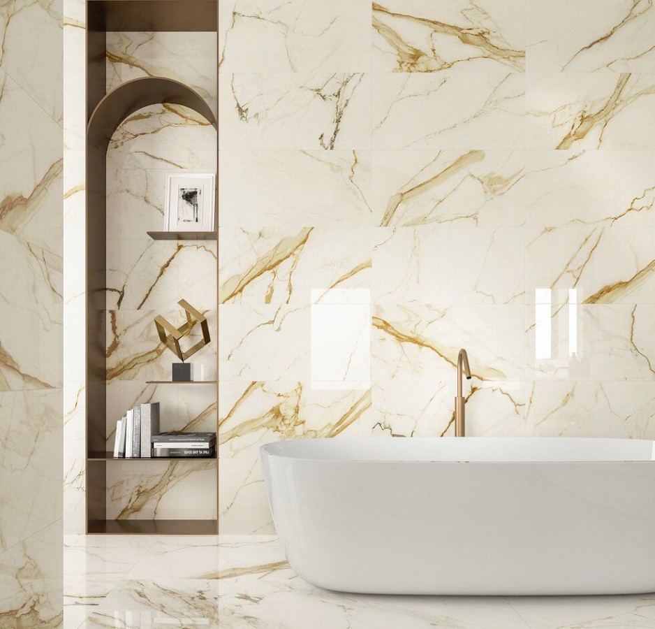 Плитка Atlas Concorde 120x50 Marvel Calacatta Imperiale Silk A4Tw глянцевая белый мрамор 9мм