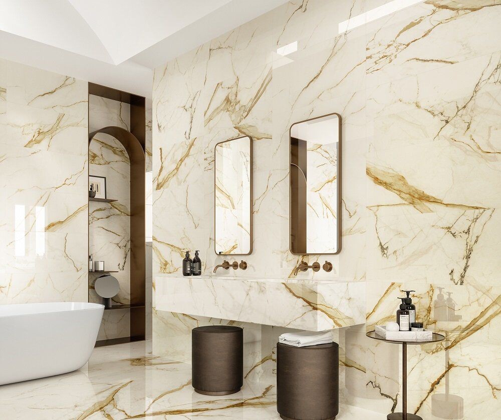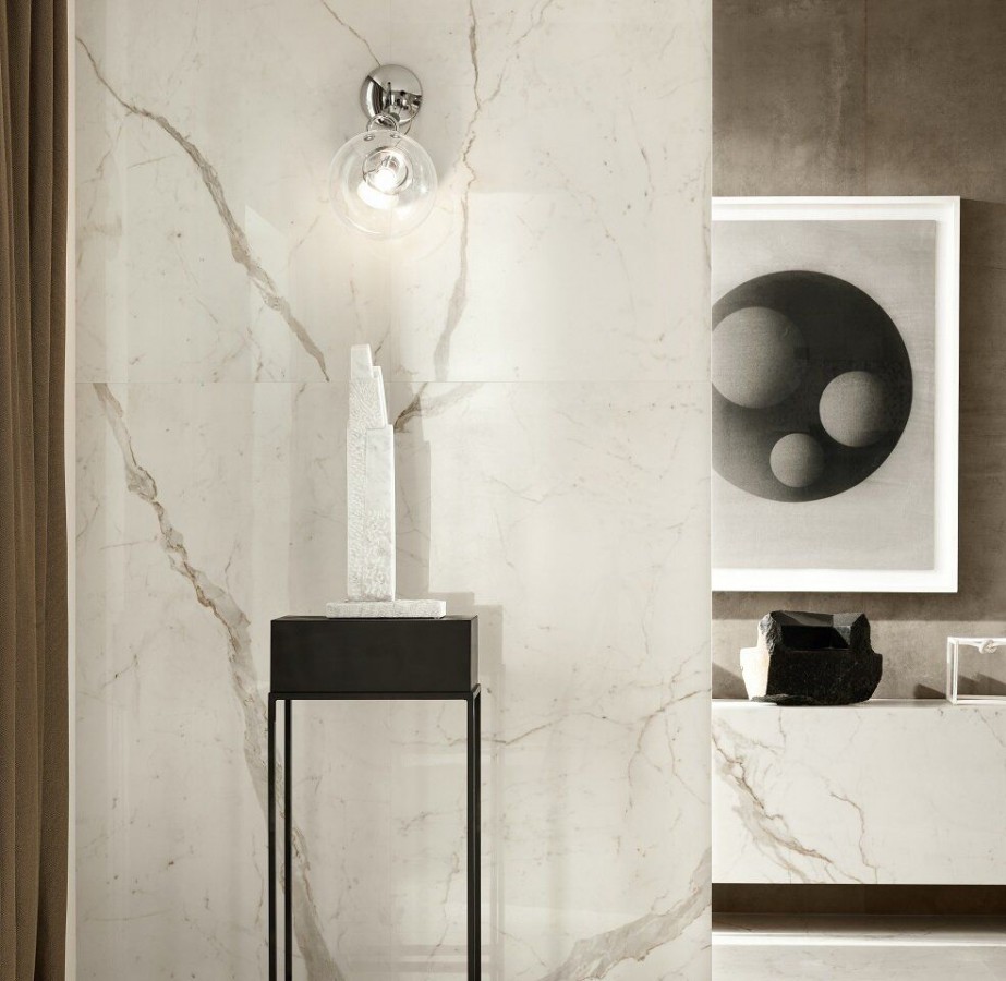 Плитка Atlas Concorde 80x40 Marvel Calacatta Prestigio Shiny A3Zt глянцевая белый мрамор 9мм
