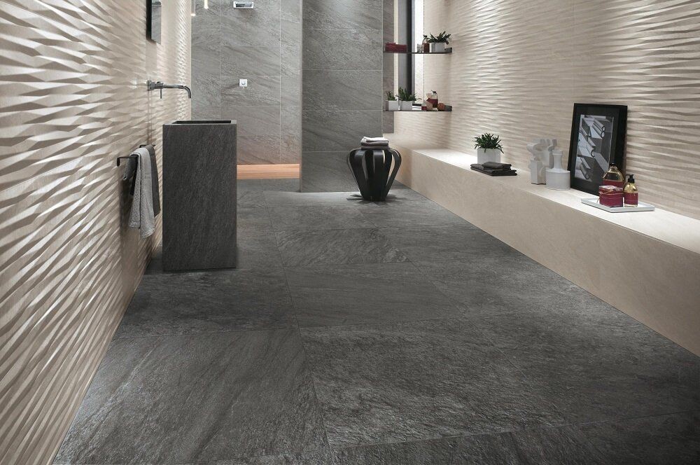 Плитка Atlas Concorde 80x40 3D Wave Grey 8Bde с рельефом темно-серый камень 10мм