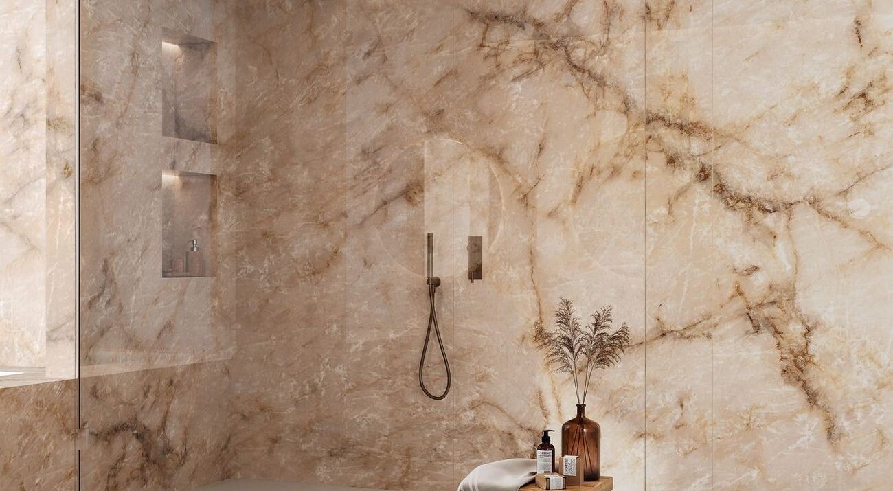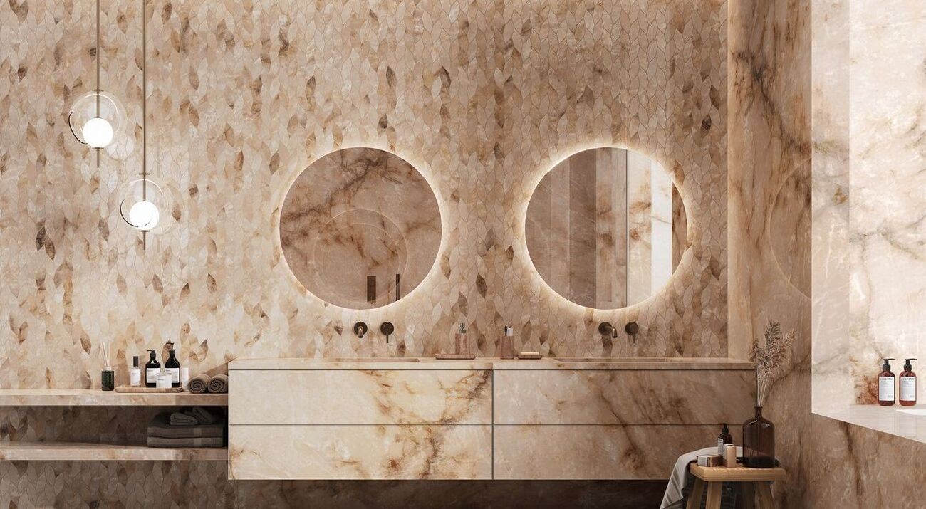 Плитка Atlas Concorde 120x60 Marvel Diva Ice Crystal Lapp Auqu глянцевая бежевый мрамор, оникс 9мм